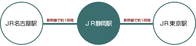 - 東海道本線で沼津から約50分、浜松から約75分。