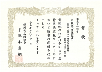 令和6年度静岡県広報コンクールにおいて、「広報紙(団体部門)審査員特別賞」をいただきました。