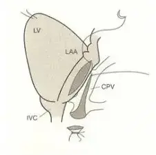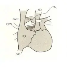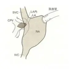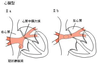 冠状静脈洞(心臓を栄養する冠状動脈が還るところ)に開口するIIaと右心房に肺静脈が個々に直接または合流して還流するIIbとに分類されます。IIaでは冠状静脈洞開口部で狭窄を起こすことがありますが、まれに冠状静脈洞の開口部そのものが狭いことがあります。