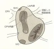 右心房を開けて、冠状静脈洞と左心房の間の隔壁を共通肺静脈に向けて切り込み、全体をパッチで覆うことで共通肺静脈血流が左心房に還るようにする手術です。その他に自己組織のみで行う左房後壁転位法などもあります。