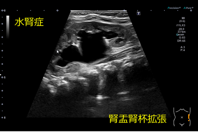 腎盂、腎杯が拡張している状態を示します。