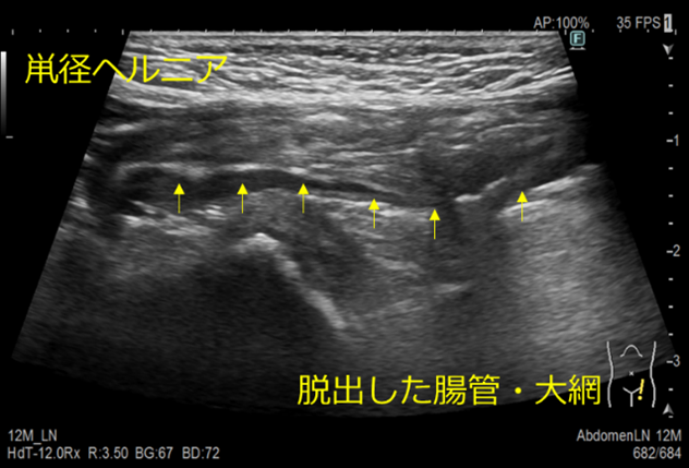鼠径靱帯頭側で鼠径部に脱出する外ヘルニアのことを鼡径ヘルニアといいます。
