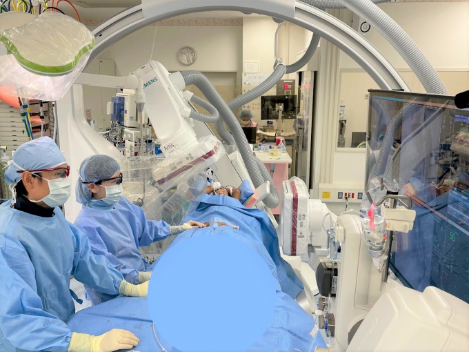 心臓病の他にも、腹部・腎臓などの血管系疾患や、外傷出血に対する緊急治療を行っています。当院では、放射線科、小児外科、腎臓内科、麻酔科、集中治療科など関係各科と、多職種で協力して取り組んでいます。IVRセンターは手術室エリア内にあり、外科手術や膜型人工肺などの補助循環を行うと同時にカテーテル治療を行う「ハイブリッド治療」の成績も全国随一です。2022年1月から最新の撮影装置を導入し、さらに低被ばく、高精度な治療が行えるようになっています。