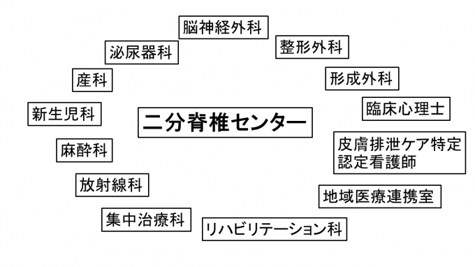 静岡県立こども病院 二分脊椎センターでは、二分脊椎治療に必要か全ての科が揃っています。