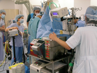 手術室では、人工心肺装置を主とするさまざまな装置の操作・管理・保守・点検を行っています。