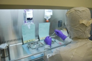 食事摂取が困難な患者さんに対し、無菌室でTPNを調製しています。新生児や小児に適した組成の約束処方を作成しています。