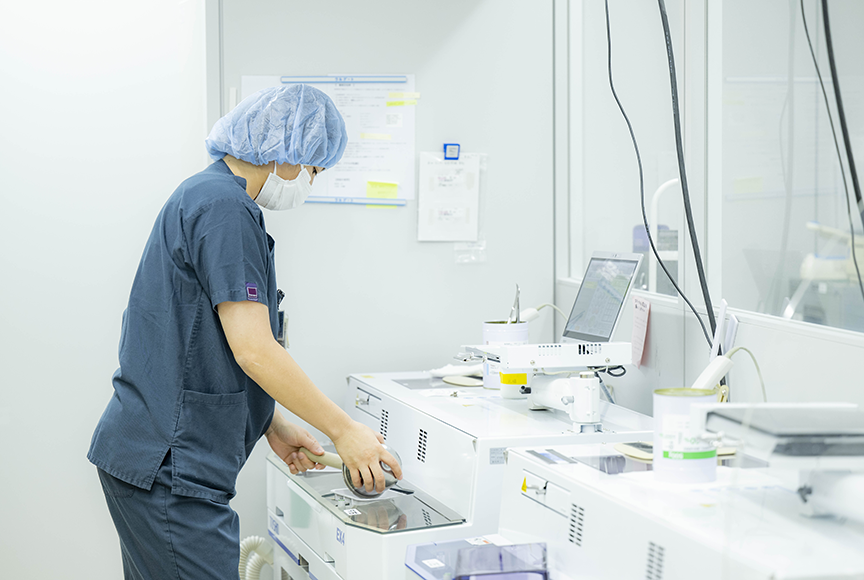 当院ではアンプルピッキングマシーンと注射薬バーコード認証システムを使用し、1施用ごとの調剤を行っています。