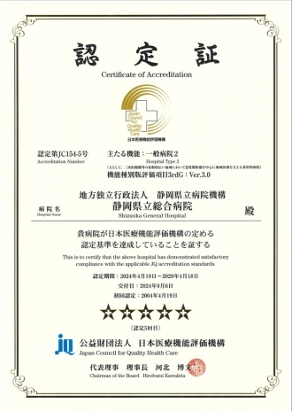 本院は、2004年4月、医療機関の第三者評価を行う公益財団法人日本医療機能評価機構の認定病院となりました。今回更新審査を受け、2024年9月に5回目の認定となりました。