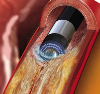 ELCA(エキシマレーザー冠動脈形成術)このレーザー光を動脈硬化の起こった冠動脈内の病変組織に照射することによって、閉塞した血管を開通させます。