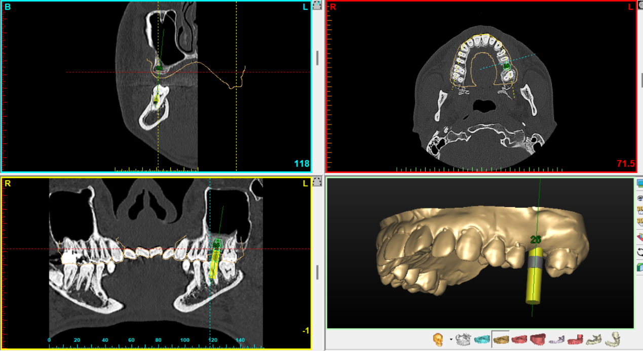 3Dコンピューターシュミレーションシステムを用いて治療計画を行い、サージカルガイドを使用することで、より確実な位置への埋入、合併症の回避に努めています。