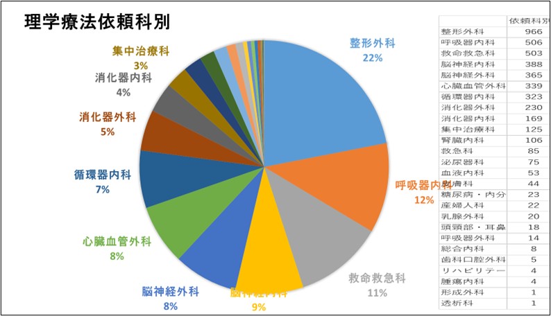 【リハビリテーション科】施設基準・実績 概要 施設基準実績 医師紹介認定学会 研究発表 外来担当医表 施設基準 厚労省施設基準 脳血管疾患等リハビリテーションI運動器リハビリテーションI呼吸器リハビリテーションI心大血管リハビリテーションIがんリハビリテーション 理学療法室 215.62㎡ 作業療法室 98.58㎡ 心臓リハビリテーション室 34.98㎡ 実績 過去5年間 2024年度 理学療法部門 依頼科別件数 2024年度 作業療法部門 依頼科別件数 概要 施設基準実績 医師紹介認定学会 研究発表 外来担当医表